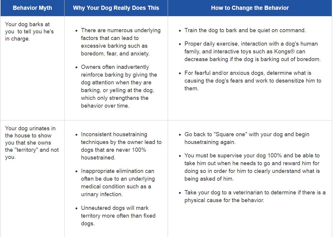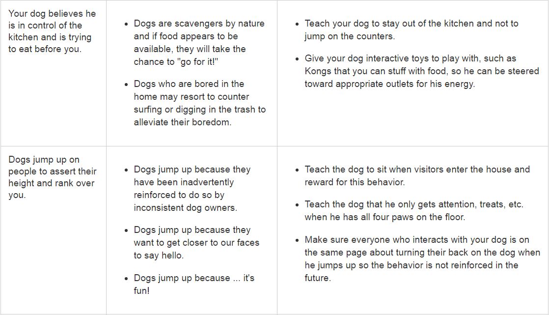 Rather than dominance, it is most often a lack of clear interspecies communication that leads to behaviors we find troubling. It is the human's responsibility to teach our dogs the behaviors that we find appropriate, and reward them when they do the things we like. Just as importantly, it is our role to show them which behaviors are not appropriate in a constructive and compassionate manner that does not lead to further anxiety on the dog's part.